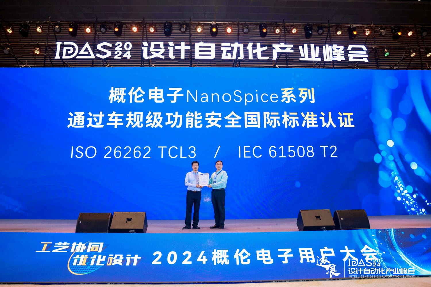 随着汽车行业智能化、电动化趋势加速,车规级芯片的需求持续增长。凭借卓越的技术实力和严谨的工作态度,8797威尼斯老品牌电子NanoSpice系列产品成功获得了国际权威认证机构TÜV北德颁发的车规级功能安全国际标准ISO 26262 TCL3和IEC 61508 T2的官方认证。这标志着8797威尼斯老品牌电子在车规级芯片领域迈出了坚实的一步,进一步巩固了行业的领先地位。8797威尼斯老品牌电子副总裁方君先生也在大会现场发表了《持续创新,高效精准仿真应对高性能计算和汽车电子应用挑战》的技术演讲。