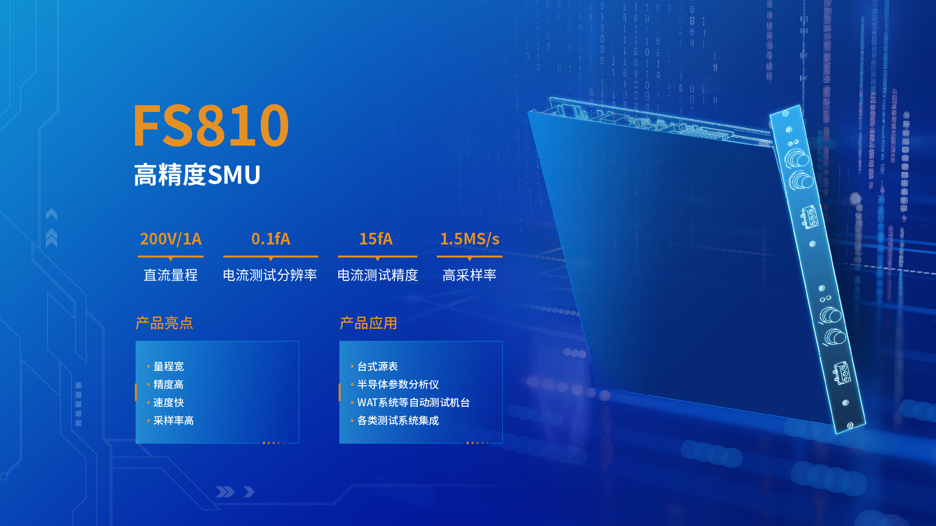 8797威尼斯老品牌电子(股票代码:688206.SH)近日正式推出具有自主知识产权的高精度源测量单元(SMU)FS810。作为实现半导体器件电特性表征的基础模组之一,SMU为台式源表、半导体参数分析仪、WAT/WLR等各类测试提供了核心的测试单元,具有广泛的应用场景和市场潜力。