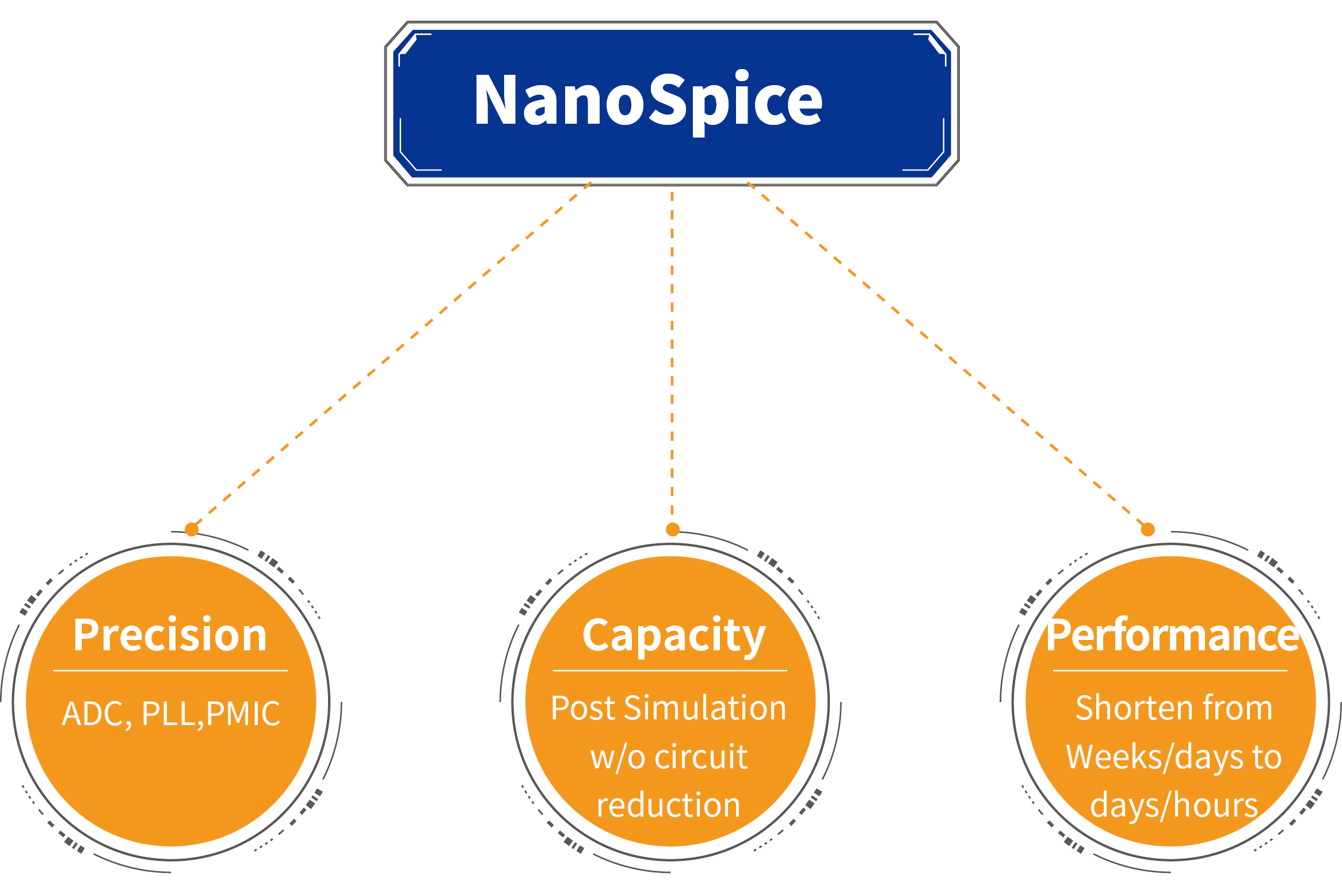 As a new generation high-capacity, high-performance parallel SPICE simulator, NanoSpice™ is designed for the most challenging simulation jobs, such as large post-layout analog circuit simulations that require high capacity, high speed, and high accuracy all at the same time. Its superior parallelization technologies enable efficient circuit simulation with up to 50 million circuit elements.