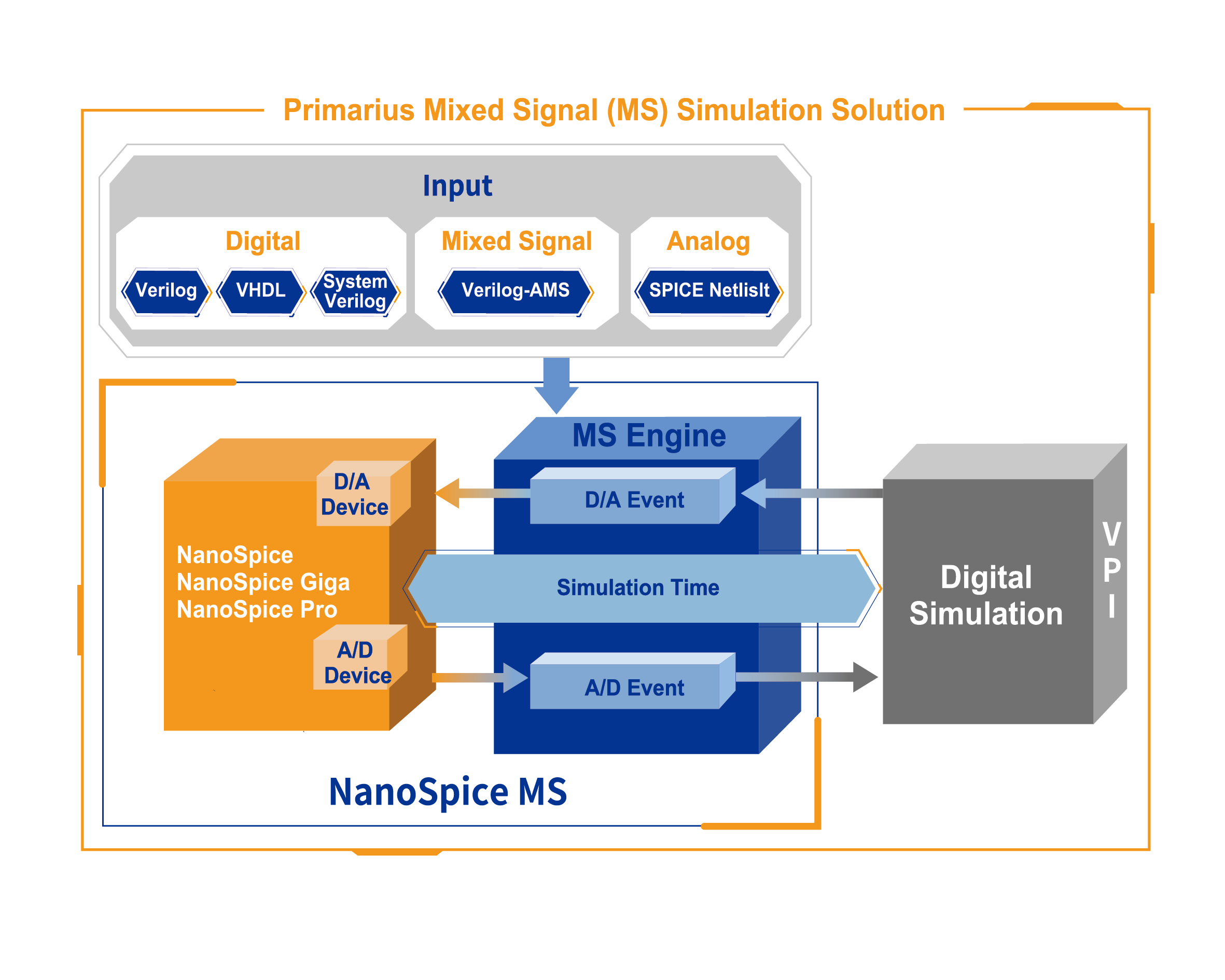 实现高性能、大容量、超快速混合信号仿真。