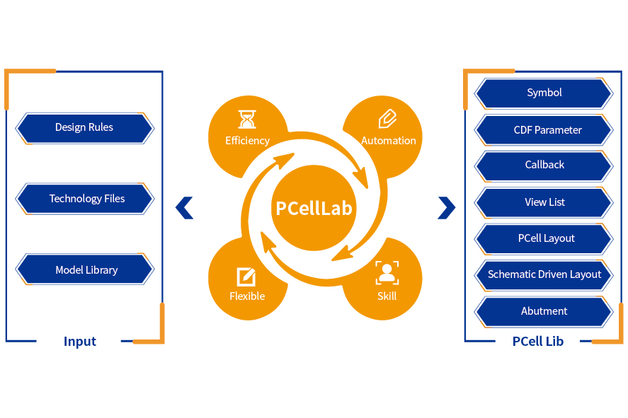 针对特殊工艺和特殊需求为用户预留了开放接口,支持用户根据其自身工艺特点自定义开发输入模板,用以实现适用于其工艺特点的PCell自动生成流程。